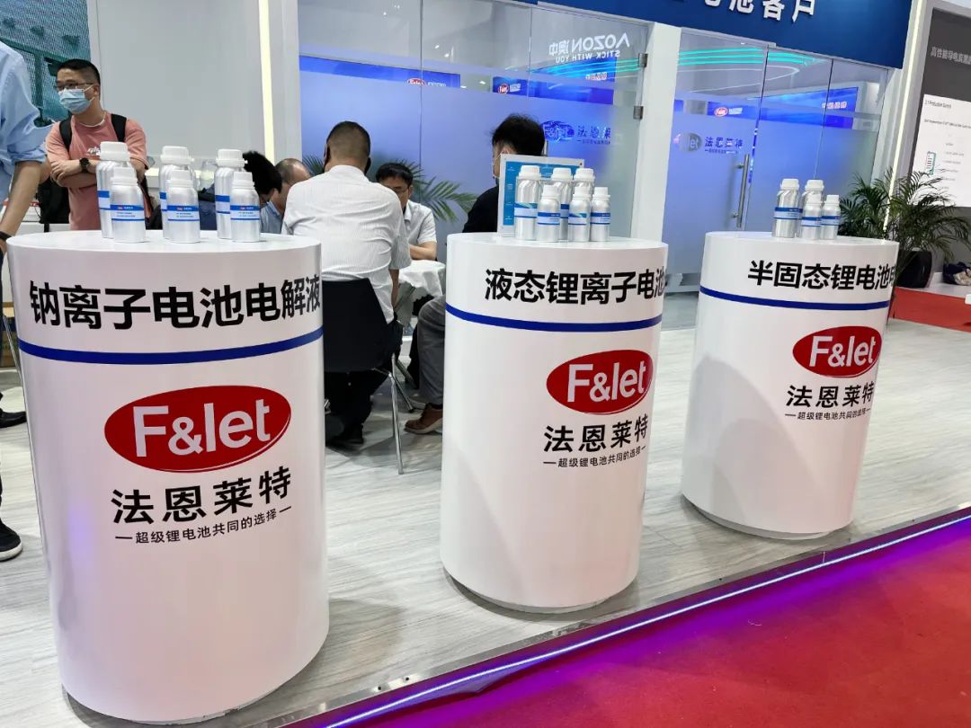 CIBF2023共設12個展館,布展面積多達24萬平方米,預計觀眾人次高達12萬+,規(guī)??涨笆⒋蟆7ǘ魅R特位于4號館4T247號,展出產(chǎn)品包括液態(tài)鋰離子電池電解液、半固態(tài)鋰電池電解質(zhì)、鈉離子電池電解液等最新技術(shù)及研發(fā)成果,前來體驗交流的客戶嘉賓絡繹不絕,新品鈉離子電池電解液如:層狀氧化物正極電解液、普魯士結(jié)構(gòu)正極電解液、聚陰離子化合物正極電解液等更是實力出圈。