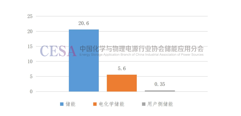 2022年中國儲能市場新增裝機功率為20.6GW,其中電化學儲能新增裝機功率約為5.6GW。用戶側儲能新增裝機功率約為0.35GW。