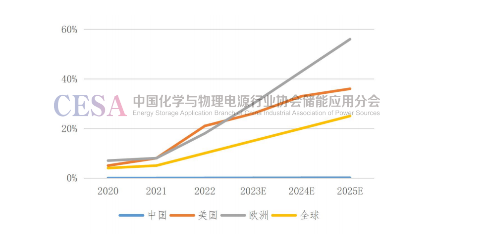 圖6 全球各區(qū)域戶用儲能滲透率預測