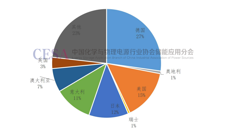3.2022年戶用儲能新增裝機中德國、美國、日本、意大利和澳大利亞位列前5,合計占比超過70%
