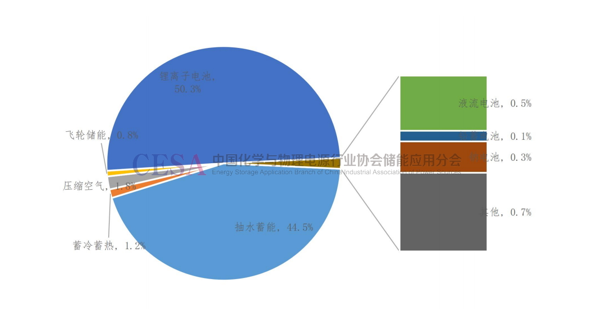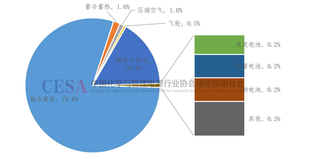 6.2022年中國新增電化學儲能中鋰離子電池占比超96%,占絕對主導地位