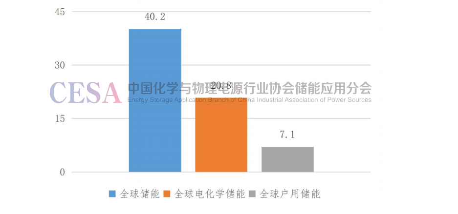 圖2 2022年全球儲能、電化學儲能和戶用儲能新增裝機功率