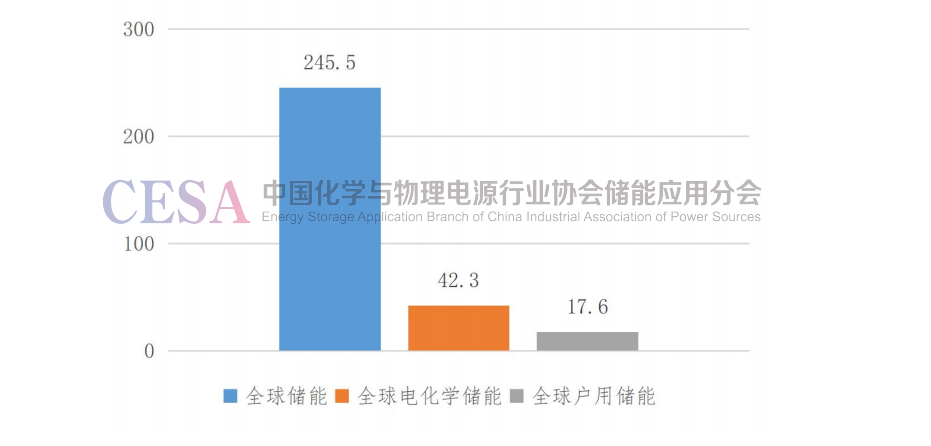 1.2022年全球儲能累計裝機功率約245.5GW,戶用儲能累計裝機功率約17.6GW