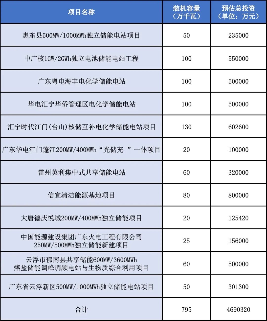 《廣東省2023年重點(diǎn)建設(shè)項(xiàng)目計(jì)劃表》中的新型儲(chǔ)能項(xiàng)目