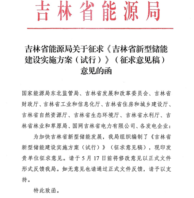 中國儲能網(wǎng)訊:近期,吉林省能源局制定了《吉林省新型儲能建設(shè)實施方案(試行)》(征求意見稿),提出新型儲能建設(shè)目標(biāo),到“十四五”末全省新型儲能規(guī)模達到500MW。首批集中式儲能示范項目規(guī)模約200MW/600MWh,其中鉛炭電池儲能、全釩液流電池儲能各100MW。