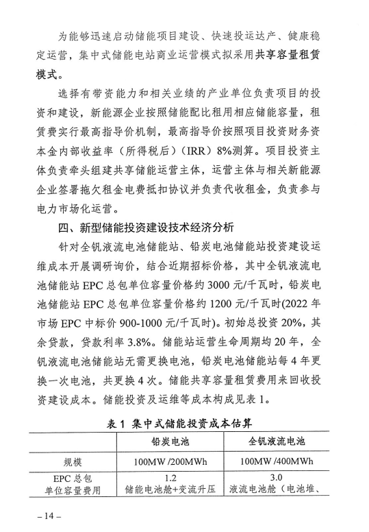 新能源發(fā)電企業(yè)應(yīng)與儲能項目開發(fā)企業(yè)或運營單位簽訂長期租賃或購買合同,租賃期 20 年,儲能長期租賃或購買合同將作為新能源發(fā)電項目并入電網(wǎng)的前置條件。