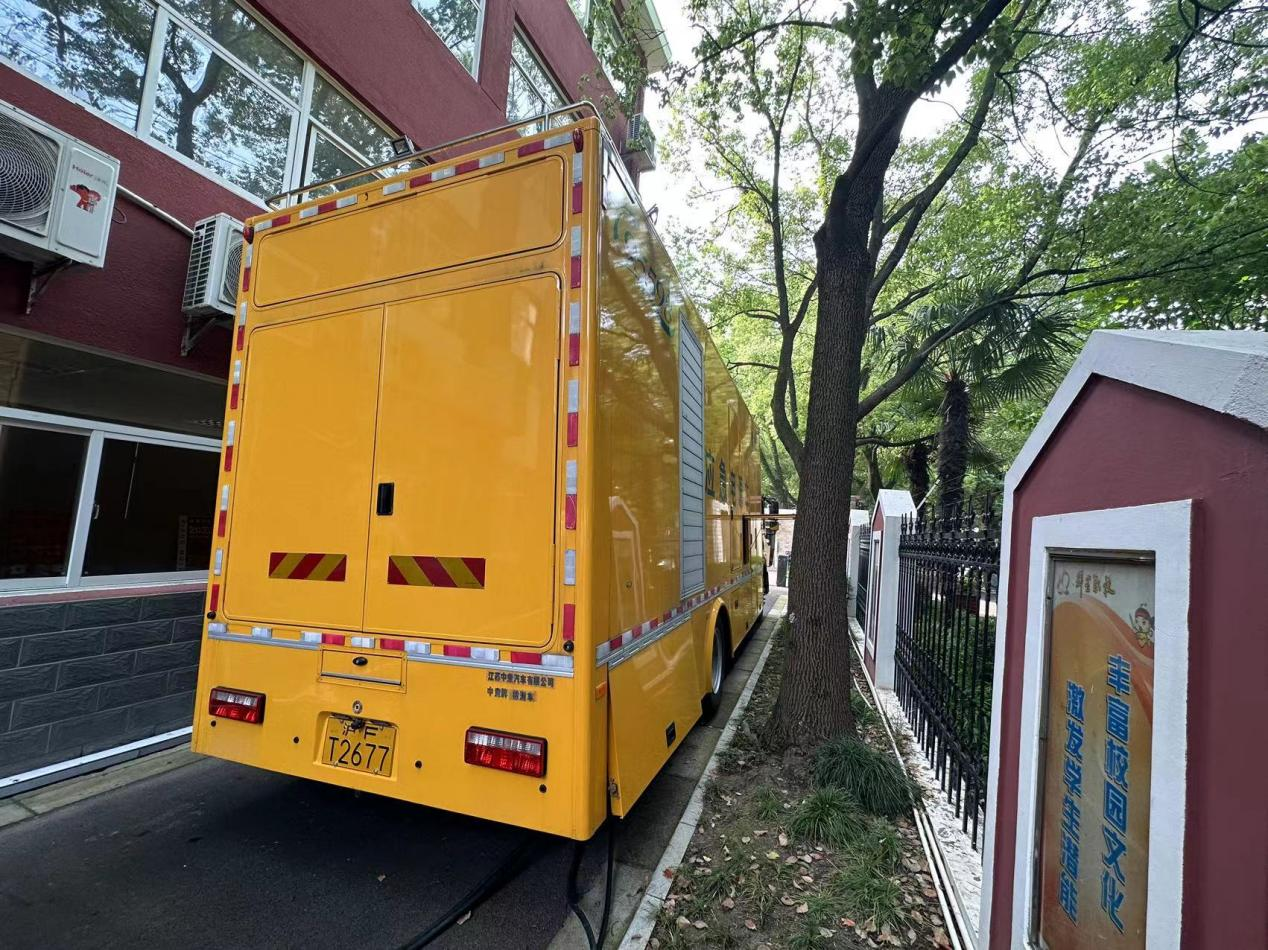 本次保電任務(wù)采用了由國網(wǎng)上海能研院自主研制150kW/300kWh型移動式儲能電源車,作為移動型的大號“充電寶”,其具備并/離網(wǎng)雙模式運行、串/并聯(lián)多模式接入和“零閃動”保供電切換能力。與傳統(tǒng)的柴油應(yīng)急電源車相比,具有毫秒級切換能力,一旦遇到停電事故,能瞬間切換至電池供電回路,用戶無感知,且無噪聲及排放污染,在炎炎夏日為高考考生提供了清潔、靜音的電力保障。