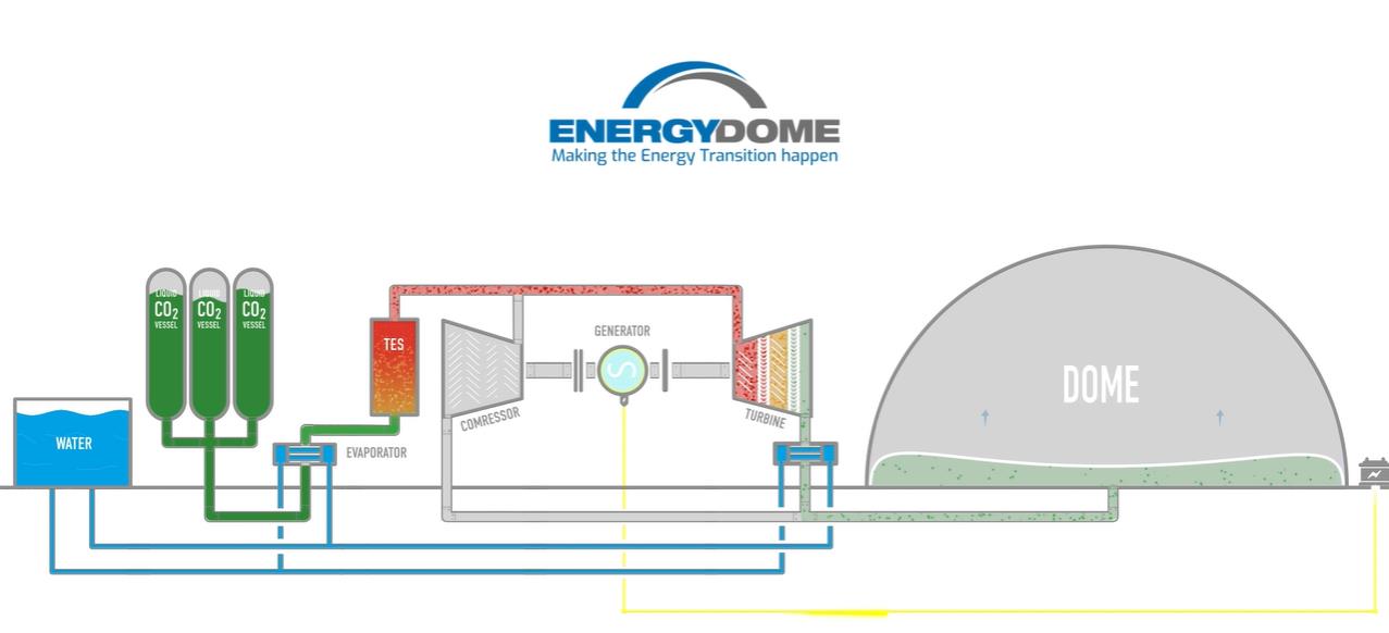 世界上第一個(gè)二氧化碳儲(chǔ)能系統(tǒng)是由意大利初創(chuàng)公司Energy Dome建立的,于2020年2月開始進(jìn)行二氧化碳儲(chǔ)能初始階段的運(yùn)行測(cè)試,僅用了兩年多的時(shí)間就從概念發(fā)展到了多兆瓦級(jí)的全面測(cè)試。