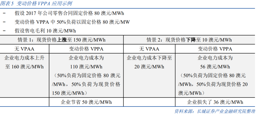 變動價格VPPA通常是企業(yè)為了管理固定價格VPPA中的現(xiàn)貨價格風險,企業(yè)可以通過支付部分零售合同的現(xiàn)貨價格將部分風險轉移給零售商(通常標準的零售合同期為1-3年)。