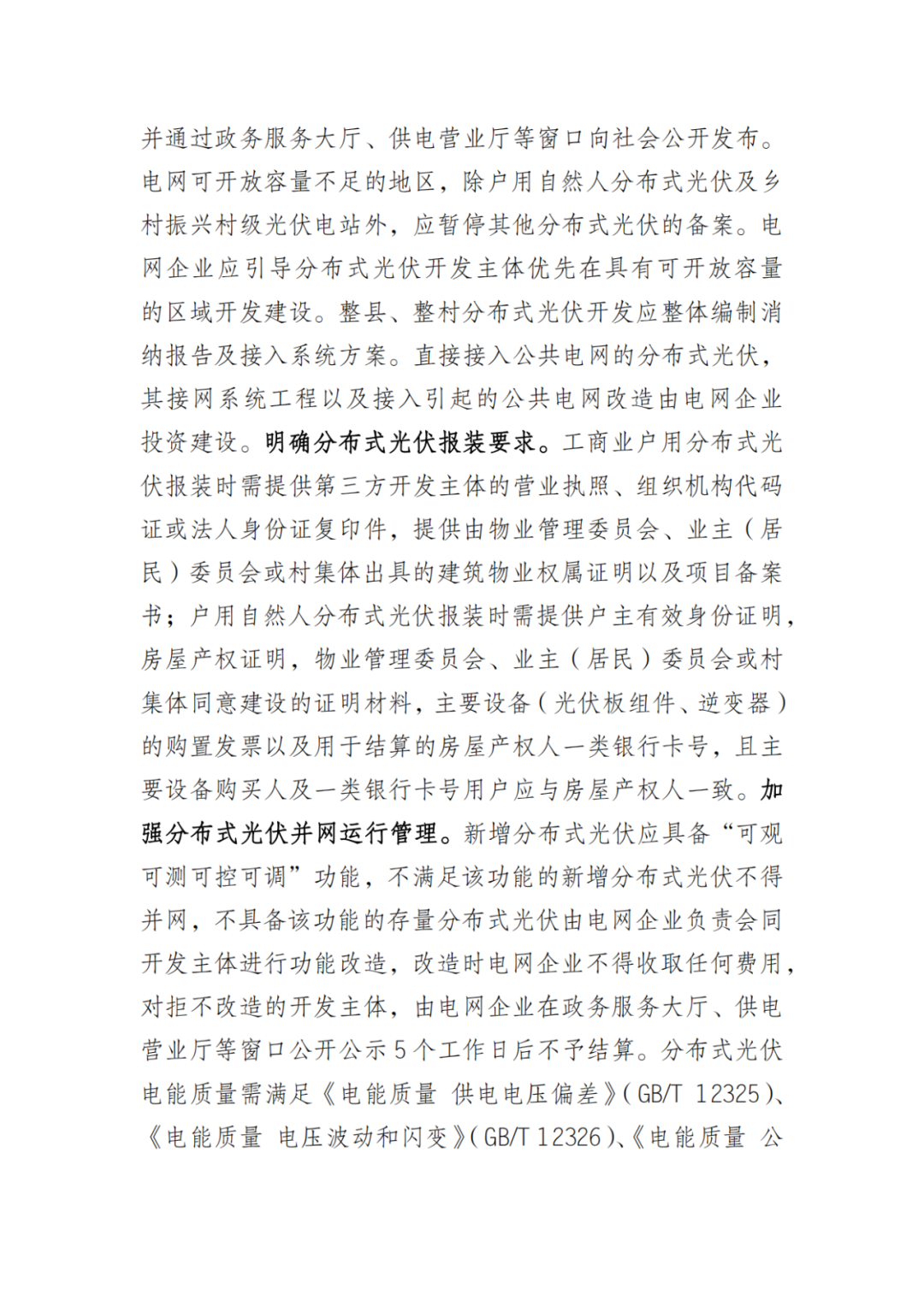此外,電網(wǎng)企業(yè)應(yīng)在每季度前7個工作日完成轄區(qū)分布式光伏電網(wǎng)可開放容量滾動測算,并通過政務(wù)服務(wù)大廳、供電營業(yè)廳等窗口向社會公開發(fā)布。戶用自然人分布式光伏、鄉(xiāng)村振興村級光伏電站:所在地供電企業(yè)應(yīng)按照“先接入后改造”的原則進行接網(wǎng)手續(xù)辦理工商業(yè)戶用分布式光伏:優(yōu)先按照“分散建設(shè)、匯集接入”的方式,結(jié)合配電網(wǎng)可開放容量情況進行開發(fā)建設(shè)。電網(wǎng)可開放容量不足的地區(qū),除戶用自然人分布式光伏及鄉(xiāng)村振興村級光伏電站外,應(yīng)暫停其他分布式光伏的備案。
