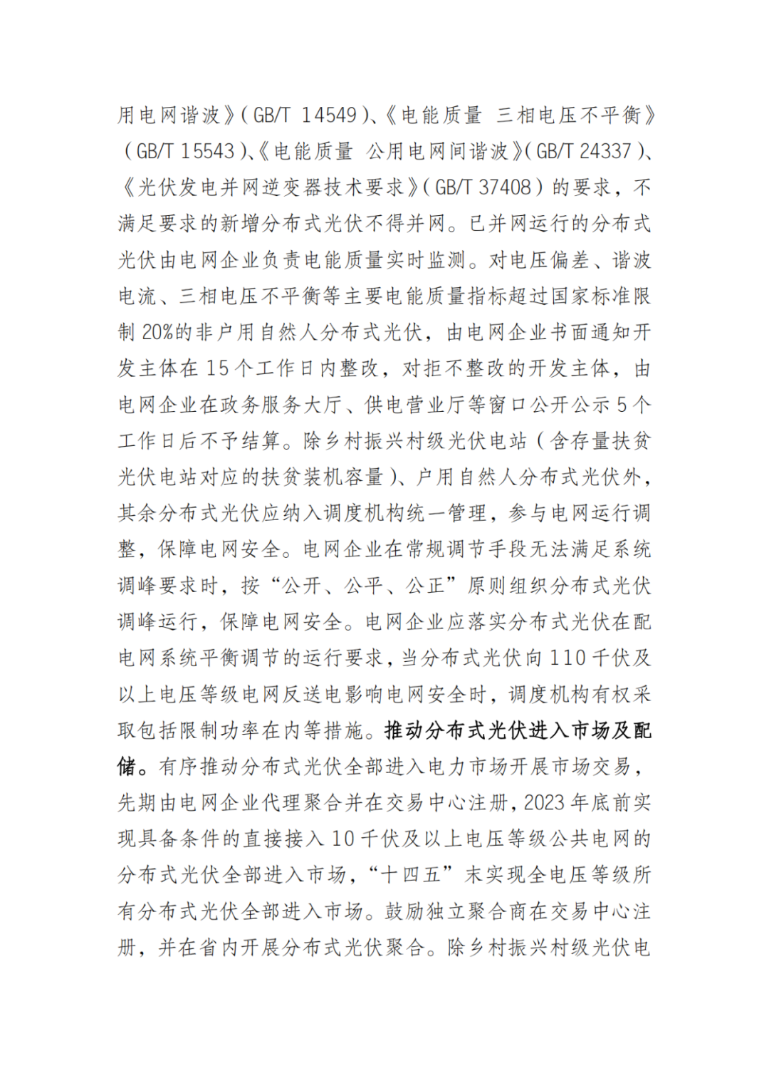 明確推動分布式光伏進入市場及配儲。有序推動分布式光伏全部進入電力市場開展市場交易,先期由電網(wǎng)企業(yè)代理聚合并在交易中心注冊,2023年底前實現(xiàn)具備條件的直接接入10千伏及以上電壓等級公共電網(wǎng)的分布式光伏全部進入市場,“十四五”末實現(xiàn)全電壓等級所有分布式光伏全部進入市場。