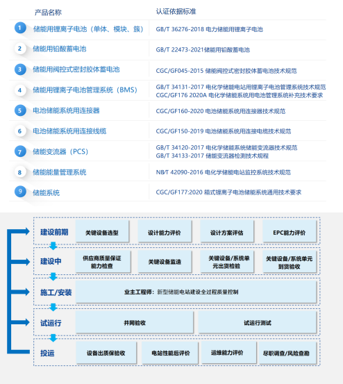 針對(duì)以上問(wèn)題,鑒衡認(rèn)證提供了從儲(chǔ)能電站關(guān)鍵設(shè)備質(zhì)量、儲(chǔ)能系統(tǒng)集成質(zhì)量到儲(chǔ)能電站安裝建設(shè)前期到調(diào)試期到運(yùn)營(yíng)期的質(zhì)量閉環(huán)全流程解決方案;