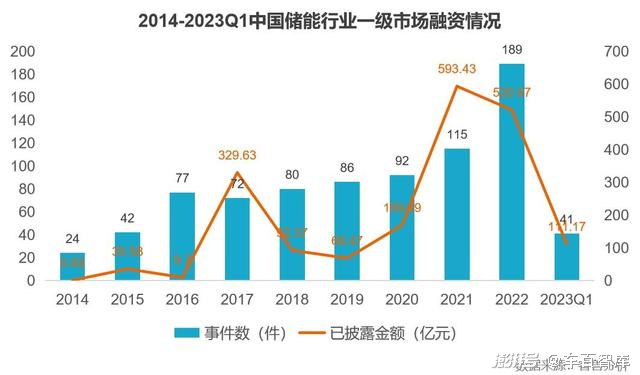 另據(jù)睿獸分析,截至2023年3月31日,國內(nèi)儲能行業(yè)有300余家企業(yè)獲得融資,涉及融資事件944件、融資金額1947億元,參與機構(gòu)達1122家。近10年,中國儲能行業(yè)累計獲得超1900億元融資。