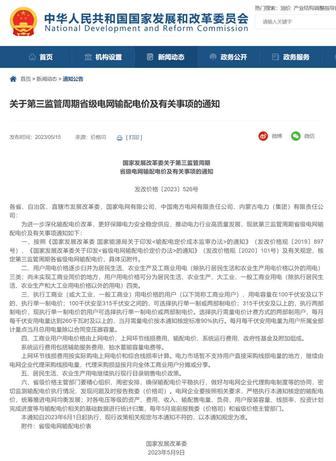 近日,國家發(fā)展改革委印發(fā)《關于第三監(jiān)管周期省級電網輸配電價及有關事項的通知》(以下簡稱《通知》),在嚴格成本監(jiān)審基礎上核定第三監(jiān)管周期省級電網輸配電價,進一步深化輸配電價改革,明確電網企業(yè)的功能定位和運營模式。