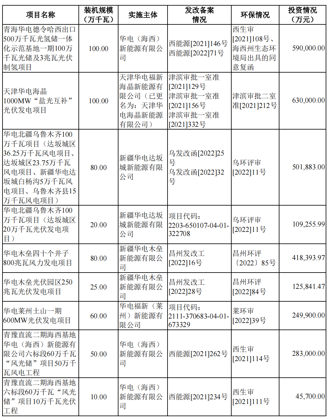 華電新能源在新疆清潔能源基地、黃河上游清潔能源基地等基地布局“風(fēng)光大基地項(xiàng)目建設(shè)”,項(xiàng)目平均資本金凈利潤率為 9.39%,平均投資回收期(稅后)為 12.67 年,具體項(xiàng)目如下表。