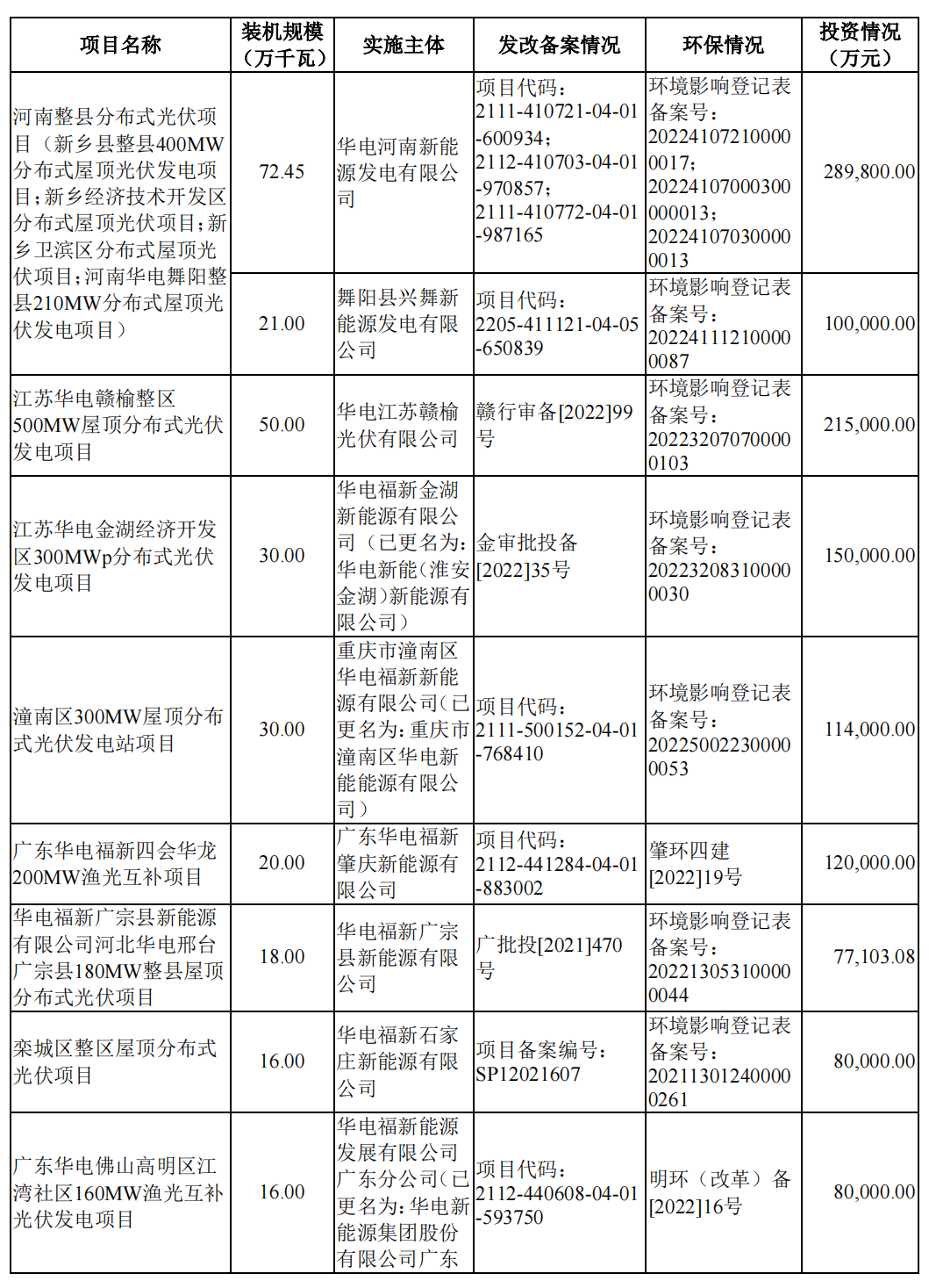 根據(jù)華電新能源集團(tuán)的招股說明書,2023年,華電集團(tuán)開工的新能源項(xiàng)目為15.16GW,包含四大類,具體如下表所示。