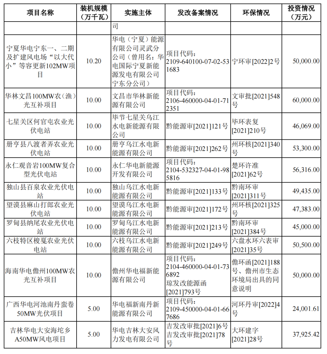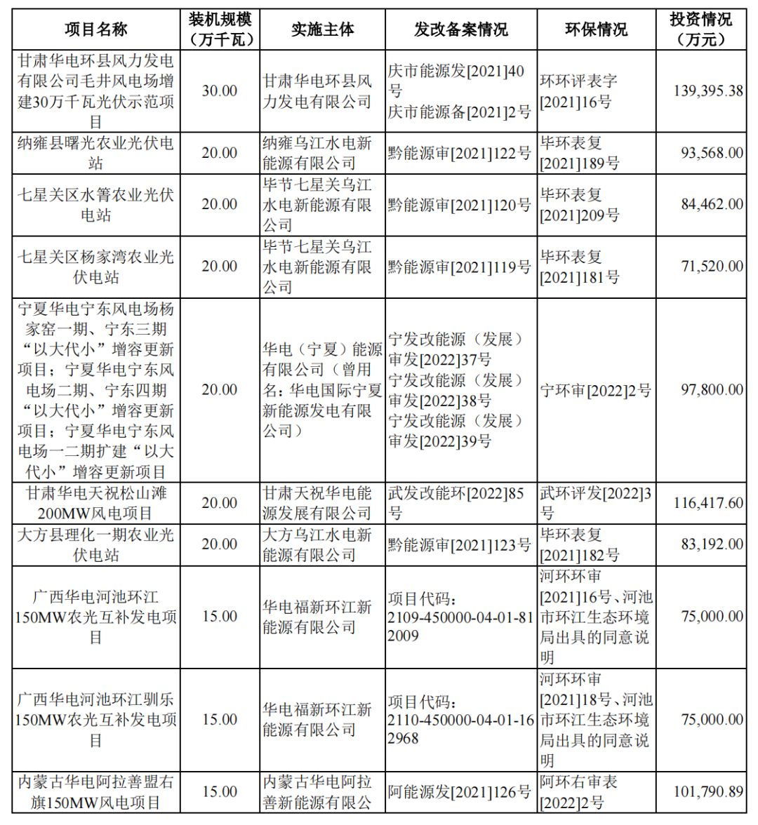 華電新能源在風(fēng)光資源較好位置配套儲能可以調(diào)和新能源間歇性、波動性,公司積極在甘肅、貴州等地布局風(fēng)光配儲“新型電力系統(tǒng)協(xié)同發(fā)展項(xiàng)目”,項(xiàng)目平均資本金凈利潤率為 11.30%,平均投資回收期(稅后)為 12.86 年,具體項(xiàng)目如下表。