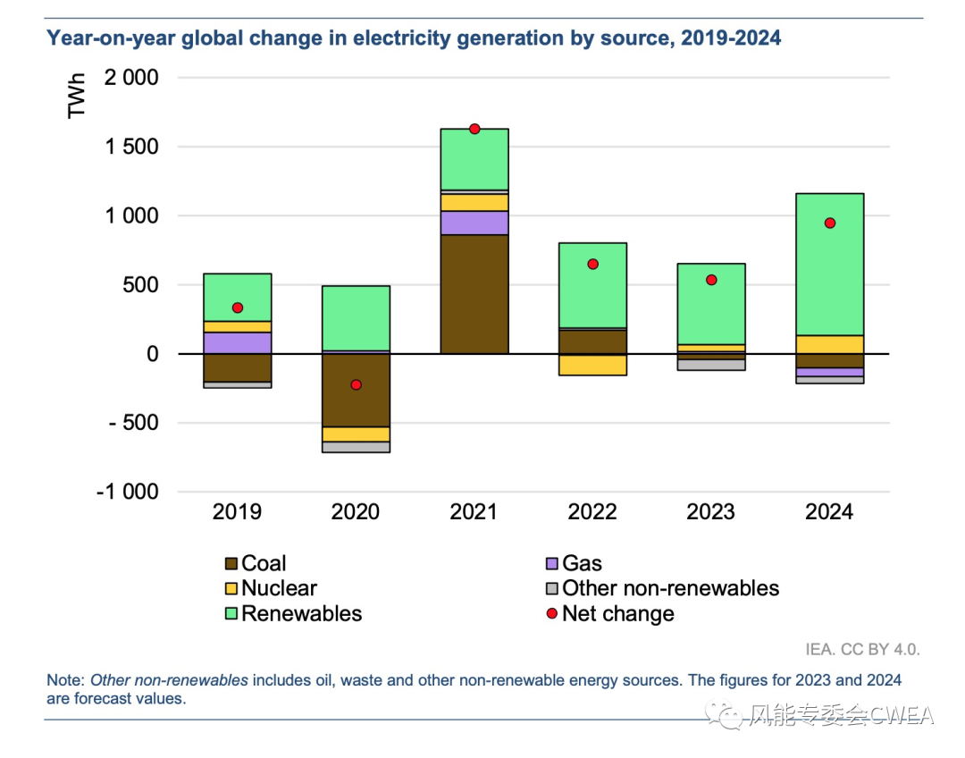 與此同時(shí),化石燃料發(fā)電量預(yù)計(jì)將在未來兩年內(nèi)下降。其中石油發(fā)電量將大幅下降,而燃煤發(fā)電量在2022年獲得1.7%增長(zhǎng)之后,將在2023年和2024年開始下降。