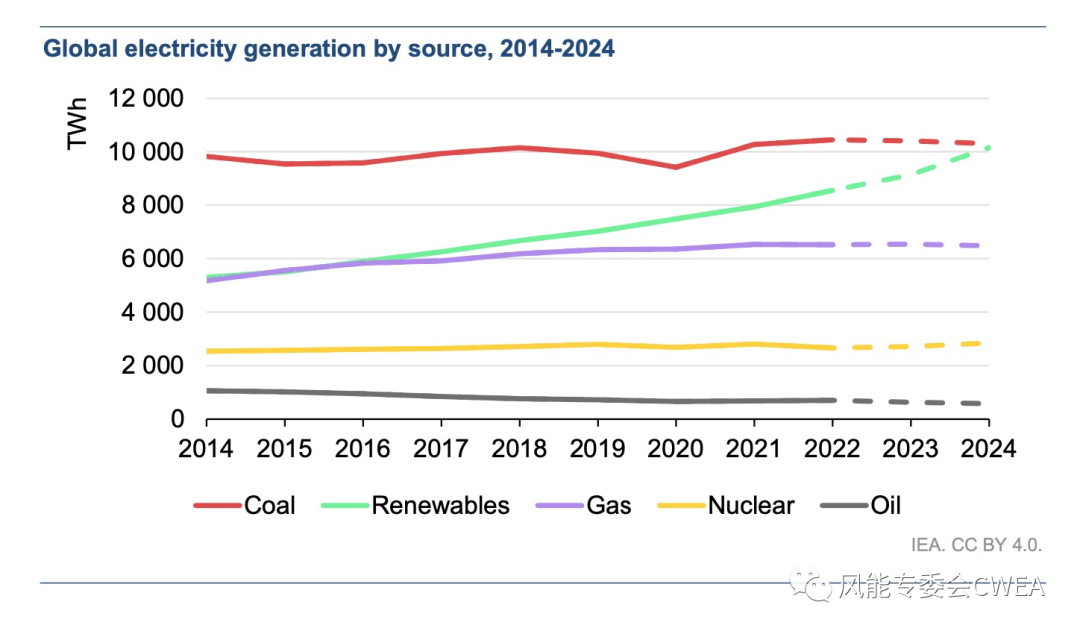 雖然全球許多地區(qū)的電力需求在不斷擴(kuò)大,但受全球可再生能源部署的快速增長(zhǎng)的影響,未來兩年全球電力需求的所有額外增長(zhǎng)都可被可再生能源滿足。預(yù)計(jì)到2024年,可再生能源占全球發(fā)電量的比例將超過三分之一。根據(jù)天氣情況,2024 年全球可再生能源發(fā)電量很可能首次超過煤炭發(fā)電量。