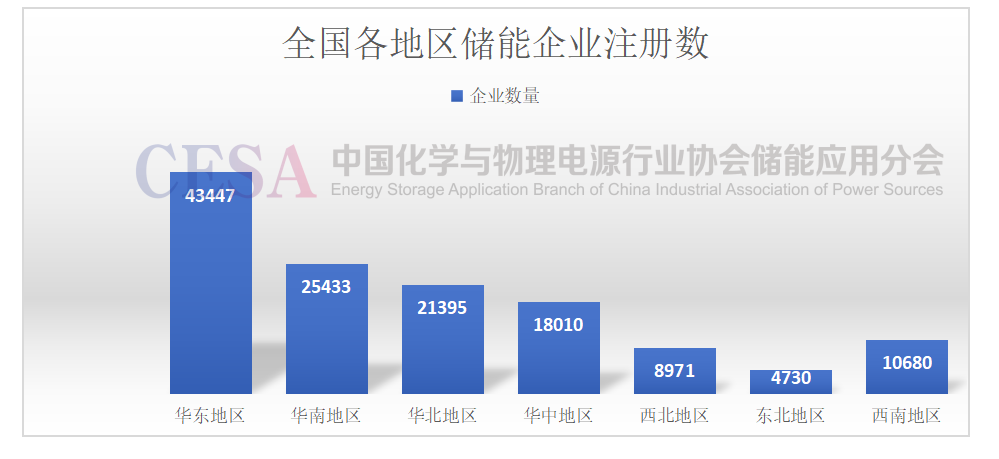 華東地區(qū)以江蘇省的12788家企業(yè)位居榜首,緊隨其后的是浙江省和山東省。上海市、安徽省、福建省和江西省也均有超過2000家儲能企業(yè)。華南地區(qū)中,廣東省以驚人的19098家企業(yè)成為全國儲能企業(yè)注冊數(shù)量的領(lǐng)軍者,遠超其他省份。