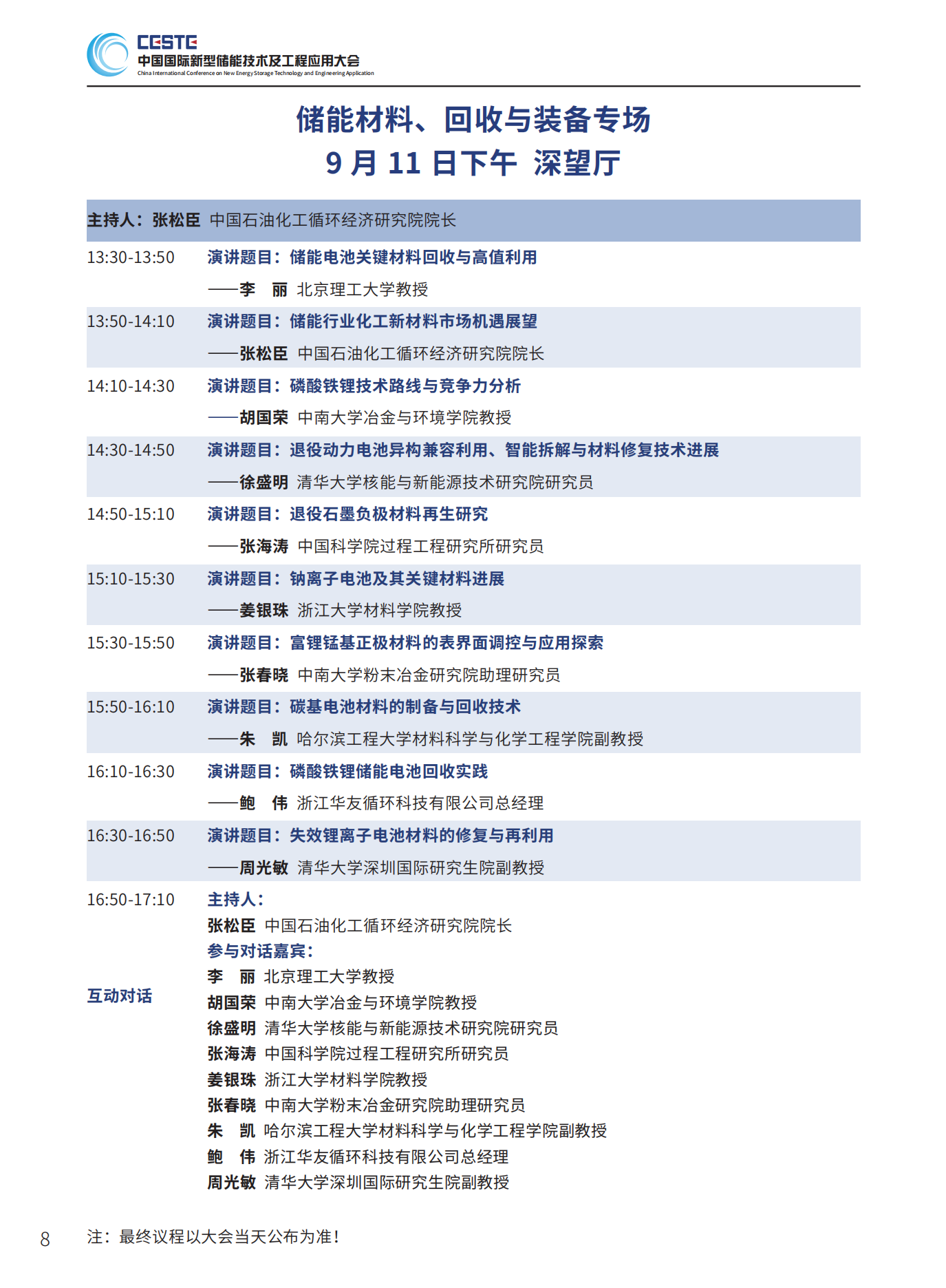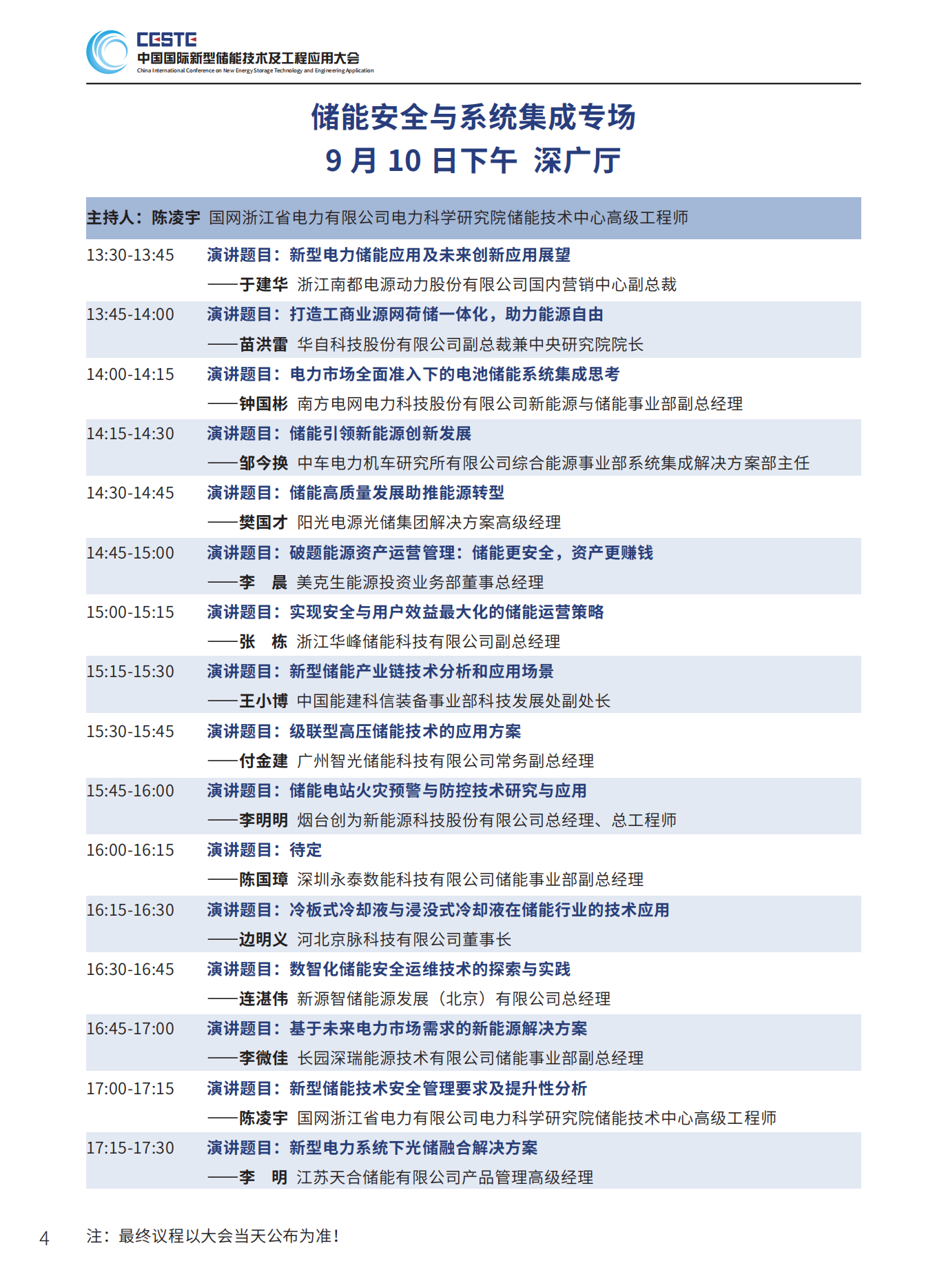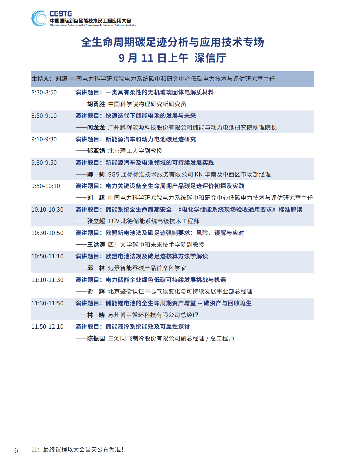 中國儲能網(wǎng)訊:由中國化學(xué)與物理電源行業(yè)協(xié)會決定聯(lián)合南方科技大學(xué)碳中和能源研究院、南方電網(wǎng)能源發(fā)展研究院等儲能領(lǐng)域的100余家單位共同支持的“碳中和能源院士高峰論壇暨第三屆中國國際新型儲能技術(shù)及工程應(yīng)用大會”將于2023年9月10-11日在深圳鵬瑞萊佛士酒店召開,以下為大會議程(最終議程以大會當(dāng)天公布為準(zhǔn))。