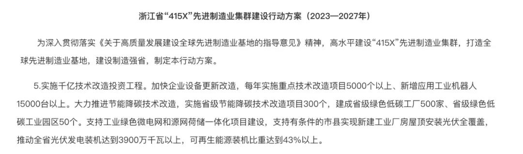日前,浙江省政府印發(fā)《浙江省“415X”先進制造業(yè)集群建設行動方案(2023—2027年)》指出,支持工業(yè)綠色微電網(wǎng)和源網(wǎng)荷儲一體化項目建設,支持有條件的縣(市、區(qū))新建工業(yè)廠房屋頂光伏全覆蓋,到2025年全市累計光伏發(fā)電裝機容量達300萬千瓦,清潔能源裝機占比49%。溫州市積極響應行動方案,建成該市首個“光伏+儲能+充電+放電+電池檢測“五位一體”綠色低碳綜合能源示范站。