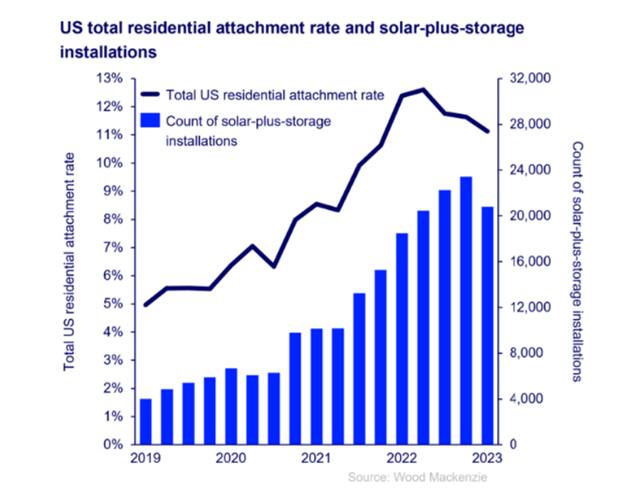 美國(guó)住宅太陽能+儲(chǔ)能項(xiàng)目的配套率