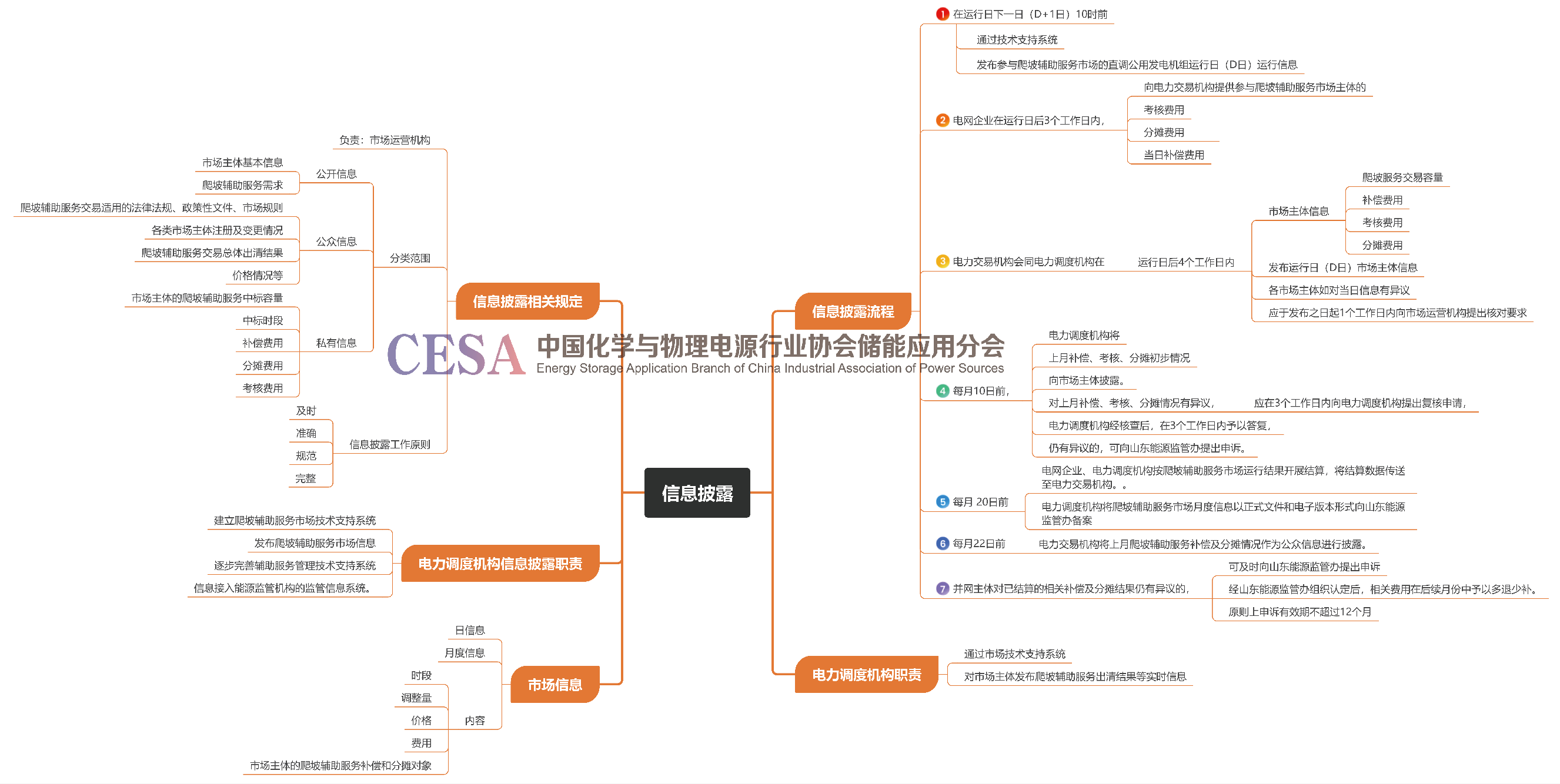 信息披露部分,規(guī)定了市場干預(yù)啟動的調(diào)節(jié)和措施,規(guī)定了信息披露的流程、相關(guān)機構(gòu)職責、市場信息的分類。為了便于理解,在披露流程前,增加了序號。信息披露制度的嚴格執(zhí)行,為輔助服務(wù)運行的規(guī)范性,提供了制度保障。