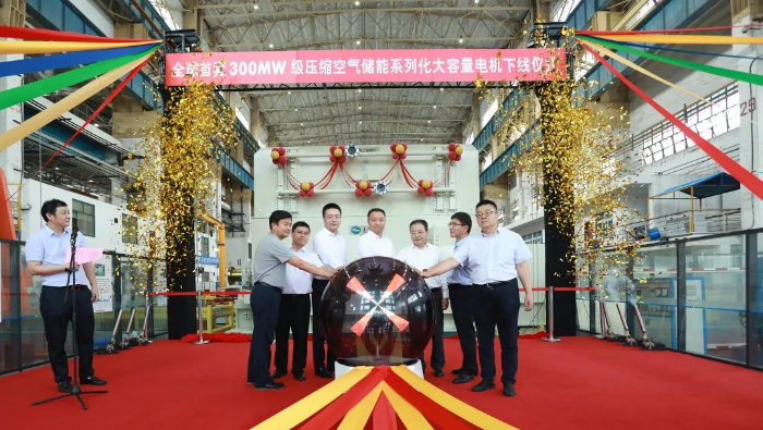 中國(guó)儲(chǔ)能網(wǎng)訊:8月23日,由上海電氣集團(tuán)上海電機(jī)廠有限公司(以下簡(jiǎn)稱“上海電機(jī)廠”)自主研制的全球首套300MW級(jí)壓縮空氣儲(chǔ)能系列化大容量電機(jī)舉行下線儀式。產(chǎn)品主要技術(shù)指標(biāo)達(dá)到同類產(chǎn)品國(guó)際先進(jìn)水平,對(duì)推動(dòng)國(guó)家壓縮空氣儲(chǔ)能行業(yè)進(jìn)展具有重大意義。