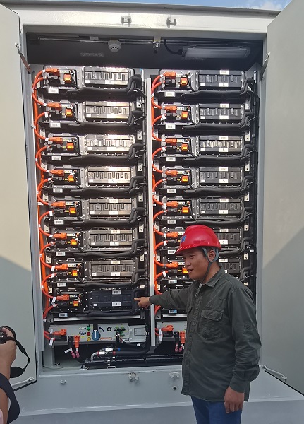 華能萊蕪電廠廠長(zhǎng)助理安吉華向記者介紹分散控制構(gòu)網(wǎng)型儲(chǔ)能電站