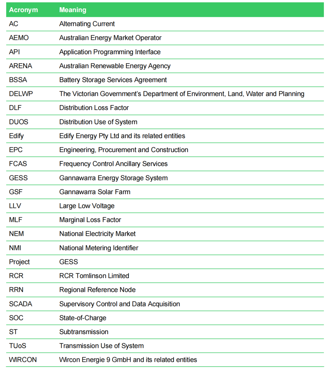 GESS是一座 25MW / 50MWh電池儲(chǔ)能電站,與維多利亞州第一個(gè)大型太陽能發(fā)電場(chǎng)——GSF(50MWAC太陽能電站)共址。GESS 由 Edify 開發(fā)和建設(shè),由 ARENA 和 DELWP 作為 2500 萬美元政府基金提供者提供資金,Edify 與 WIRCON 作為 50:50 合資共同投資者組成財(cái)團(tuán)。Tesla 是電池供應(yīng)商,RCR 是 EPC 承包商,EnergyAustralia 是新 電池儲(chǔ)能服務(wù)協(xié)議(BSSA )下 GESS 的長(zhǎng)期運(yùn)營(yíng)商。