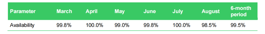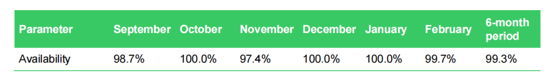 在整個(gè)報(bào)告期間,GESS的可用性也很高,所有月份記錄的平均>為99%,不低于97.4%(見表9和表10)。