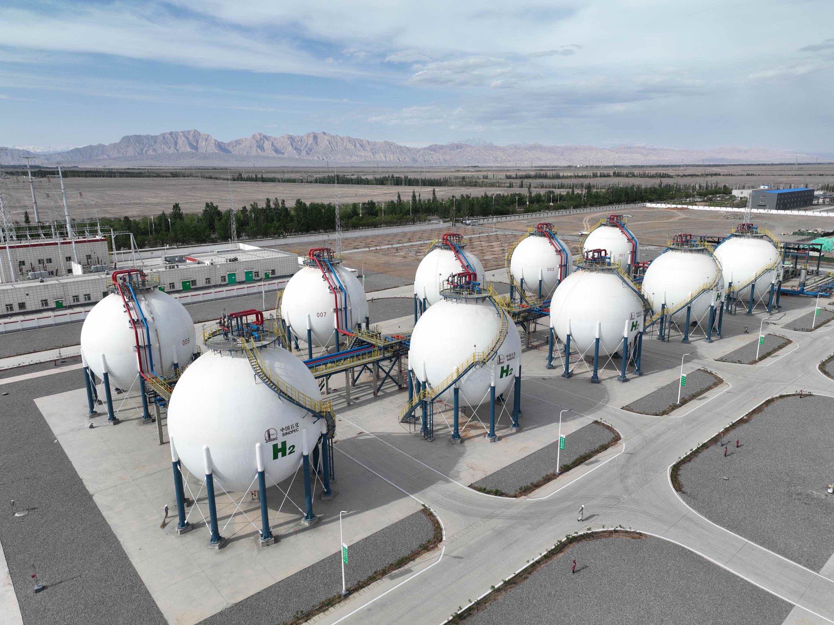 該項目是國內首次規(guī)?;霉夥l(fā)電直接制綠氫的項目,利用新疆地區(qū)豐富的太陽能資源發(fā)電直接制綠氫,電解水制氫能力2萬噸/年,儲氫能力21萬標立方、輸氫能力2.8萬標立方每小時。今年6月30日,項目已成功貫通綠氫生產、輸送、利用全流程,部分制氫車間順利投產產氫。項目由中國石化新星公司負責實施,中石化廣州(洛陽)工程公司、中石化第五建設公司、中原建設工程公司等單位參與建設。
