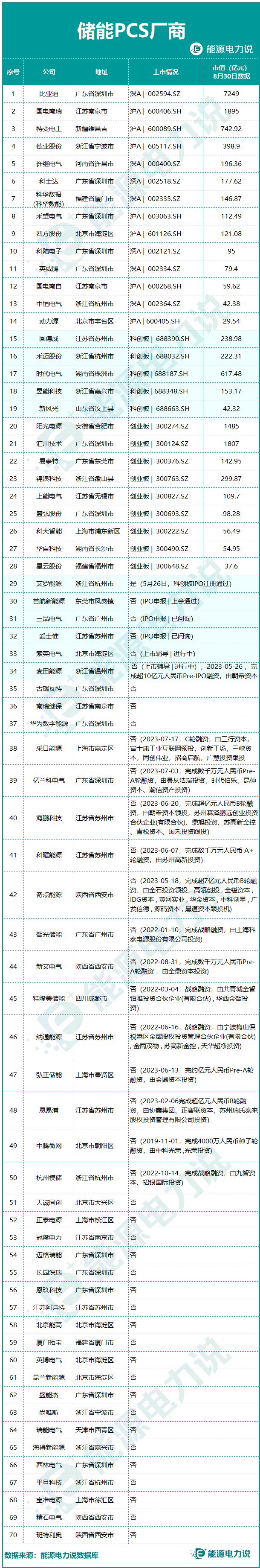 能源電力說根據(jù)公開數(shù)據(jù),整理了70家有儲(chǔ)能PCS產(chǎn)品的廠商。