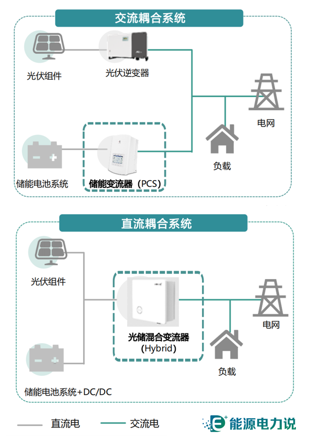 儲(chǔ)能變流器有單獨(dú)的儲(chǔ)能變流器(PCS)和光儲(chǔ)混合變流器(Hybrid)兩大類型。單儲(chǔ)能變流器用于交流耦合系統(tǒng),應(yīng)用場景主要是大儲(chǔ);Hybrid使用直流耦合方案,主要應(yīng)用于戶儲(chǔ)。