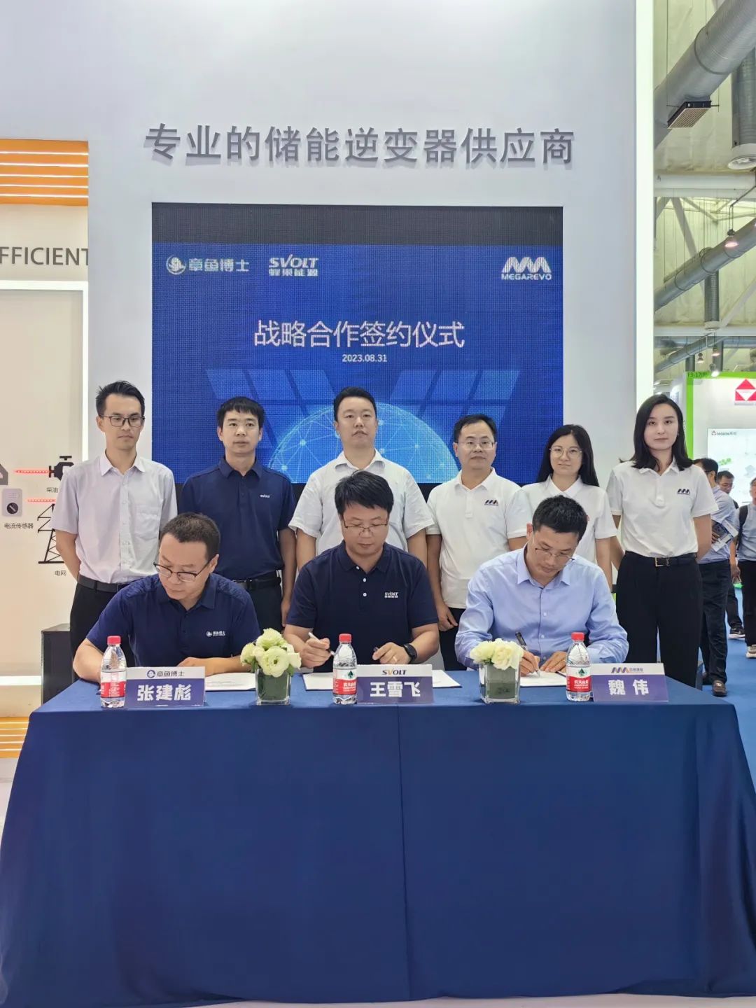 活動現(xiàn)場,蜂巢能源商儲電池交付部門和章魚博士的簽約代表與邁格瑞能銷售副總監(jiān)魏偉共同在三方協(xié)議書上簽字。蜂巢能源工藝裝備中心負(fù)責(zé)人兼章魚博士總經(jīng)理尹東星,邁格瑞能總經(jīng)理黃慧金等雙方相關(guān)領(lǐng)導(dǎo)共同出席會議并見證了簽約儀式。