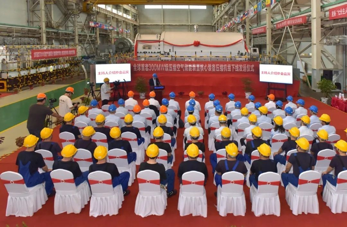 中國儲能網(wǎng)訊:9月20日,在用戶的見證下,陜鼓為“湖北應(yīng)城300MW級壓縮空氣儲能電站示范工程”項目提供的多臺大型壓縮機(jī)組在總裝車間成功下線。