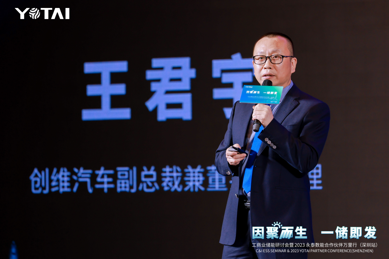 創(chuàng)維汽車(chē)副總裁兼董事長(zhǎng)助理王君宇先生就《價(jià)值投資創(chuàng)新驅(qū)動(dòng)》進(jìn)行了主題分享,他表示,新能源產(chǎn)業(yè)賽道是一顆璀璨的明星,其中,光儲(chǔ)充更是迎來(lái)了投資風(fēng)口,他非??春糜捞?shù)能光儲(chǔ)充解決方案,尤其是永泰數(shù)能的光儲(chǔ)充一體化“城市驛站”,他認(rèn)為“城市驛站”不管是在商業(yè)模式上、產(chǎn)品品類(lèi)上,還是在用戶(hù)的生活方式上,都做出了開(kāi)創(chuàng)性的創(chuàng)新與變革,遙遙領(lǐng)先于行業(yè),創(chuàng)維愿與永泰數(shù)能強(qiáng)強(qiáng)聯(lián)手,共贏未來(lái)。