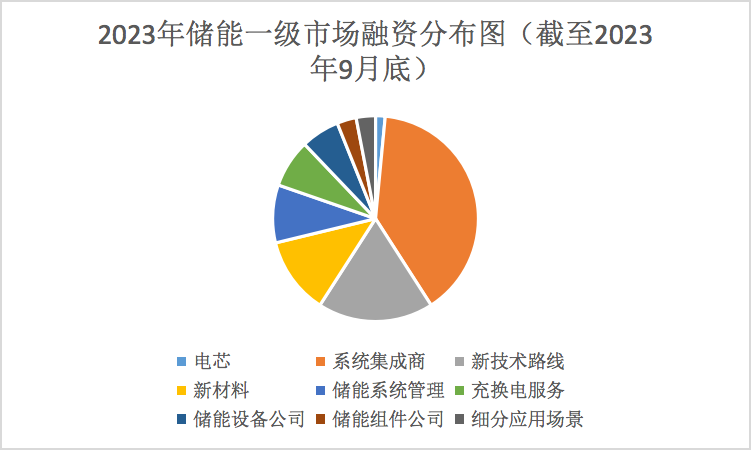 《中國企業(yè)家》對(duì)2023年儲(chǔ)能一級(jí)市場投融資的不完全統(tǒng)計(jì)顯示,近百起融資案例涉及66家企業(yè),其中除了海辰儲(chǔ)能一家電芯公司,主業(yè)為儲(chǔ)能系統(tǒng)集成的企業(yè)數(shù)量最多,為26家;新技術(shù)路線——鈉電、液流等領(lǐng)域的有12家;另外新材料領(lǐng)域的公司有8家,其余的十幾家公司散布在儲(chǔ)能周邊——儲(chǔ)能系統(tǒng)管理有6家,主營充換電服務(wù)的有5家,設(shè)備公司有4家,組件有2家,還有2家公司面向儲(chǔ)能在細(xì)分場景的應(yīng)用。