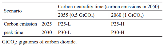 為了探討碳達峰時間和碳中和時間差異對能源系統(tǒng)轉(zhuǎn)型的影響,設(shè)計了以下4個轉(zhuǎn)型情景(表1)。