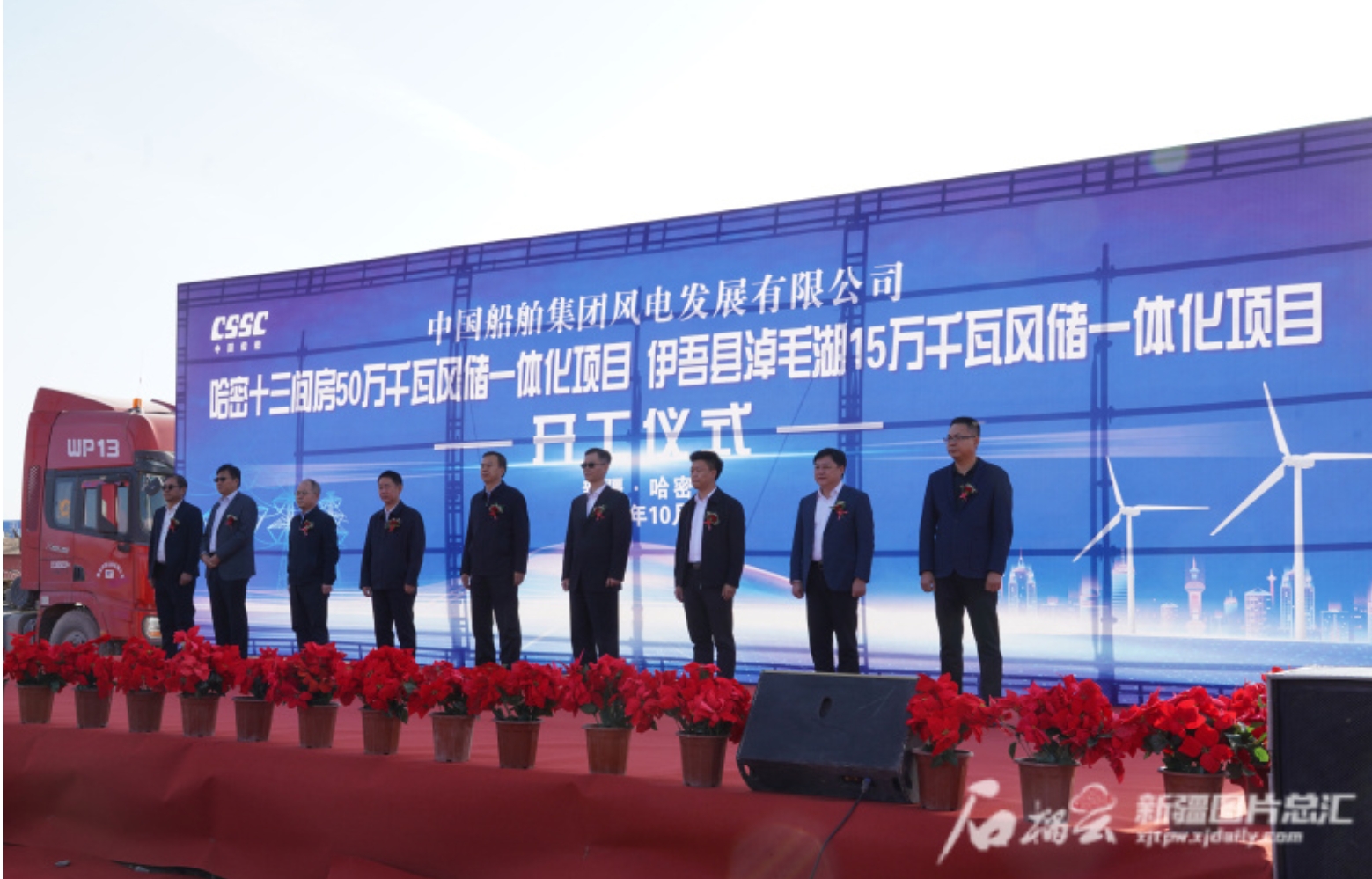 中國儲能網(wǎng)訊:10月27日,在哈密高新技術(shù)產(chǎn)業(yè)開發(fā)區(qū)北部新興產(chǎn)業(yè)園內(nèi),中國船舶集團(tuán)風(fēng)電發(fā)展有限公司哈密十三間房50萬千瓦風(fēng)儲一體化項目、伊吾淖毛湖15萬千瓦風(fēng)儲一體化項目同步舉行開工儀式。