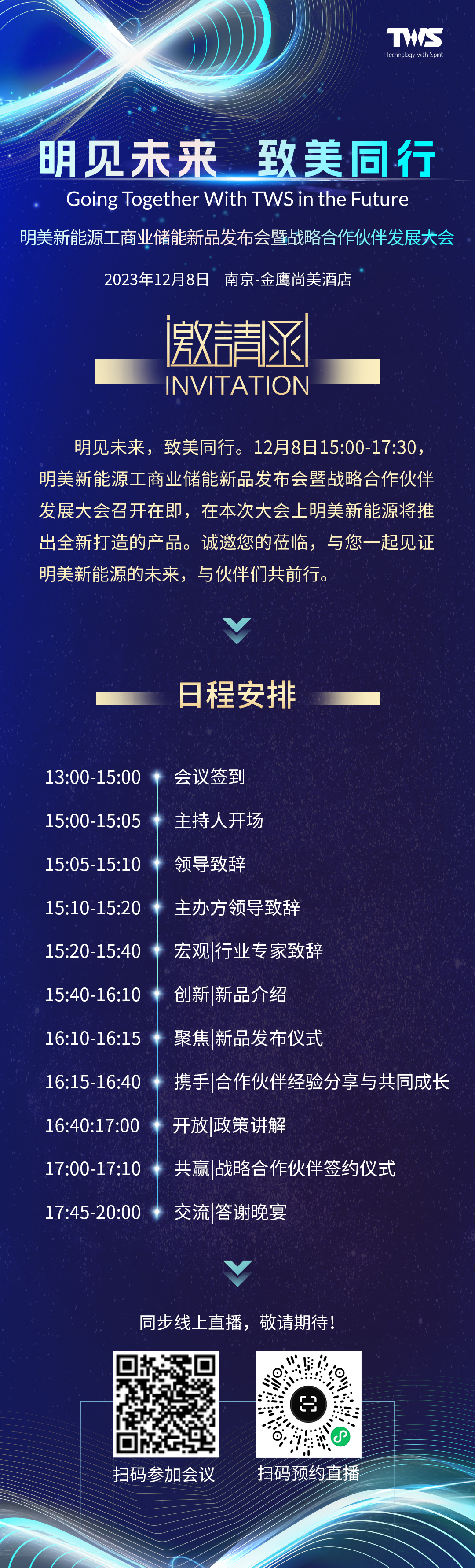 12月8日,南京,明美新能源工商業(yè)儲能新品發(fā)布會暨戰(zhàn)略合作伙伴發(fā)展大會,期待您的蒞臨!