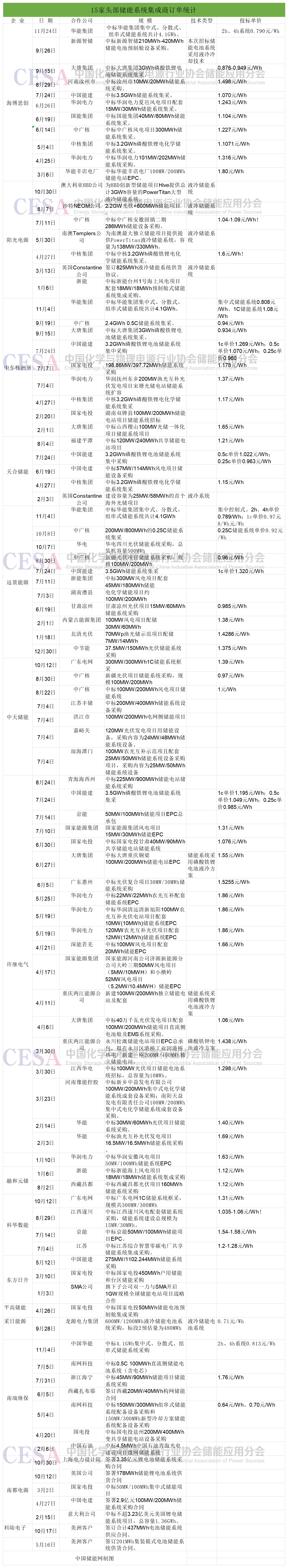 中國(guó)儲(chǔ)能網(wǎng)統(tǒng)計(jì)了海博思創(chuàng)、陽(yáng)光電源、中車(chē)株洲所、遠(yuǎn)景能源、許繼電氣等15家主要儲(chǔ)能系統(tǒng)集成商今年1-11月的訂單情況。15家企業(yè)拿下的訂單規(guī)模超35GWh,其中包括參與央國(guó)企儲(chǔ)能系統(tǒng)集采,還有斬獲的海外訂單。