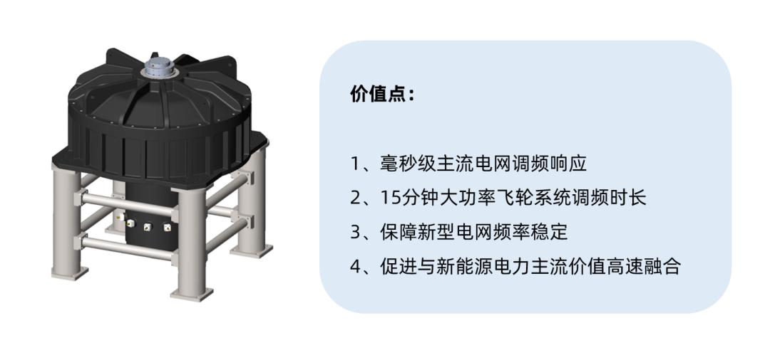 該項目主要針對新能源發(fā)電在大規(guī)模并網(wǎng)后引起的電力系統(tǒng)不穩(wěn)定性問題,解決了其間歇性和波動性帶來的挑戰(zhàn)。作為一項平臺技術,長時、大容量飛輪儲能系統(tǒng)可以應用于新型電力系統(tǒng)的調(diào)頻儲能場景,通過高頻次、快速充放電來穩(wěn)定并網(wǎng),提高新能源的消納能力。
