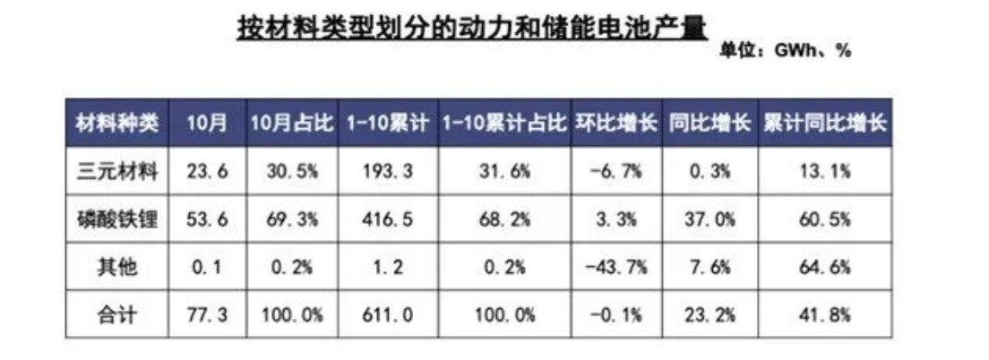 近兩年來(lái),隨著車(chē)企不斷尋求降本以及政策補(bǔ)貼的退坡、取消,磷酸鐵鋰電池再次占據(jù)主流市場(chǎng)。2021年,我國(guó)磷酸鐵鋰電池裝車(chē)量反超三元鋰電池3.6個(gè)百分點(diǎn)。今年,磷酸鐵鋰電池裝車(chē)量再次攀升。中國(guó)汽車(chē)動(dòng)力電池產(chǎn)業(yè)創(chuàng)新聯(lián)盟數(shù)據(jù)顯示,1—10月,國(guó)內(nèi)磷酸鐵鋰電池市占率超過(guò)68%。