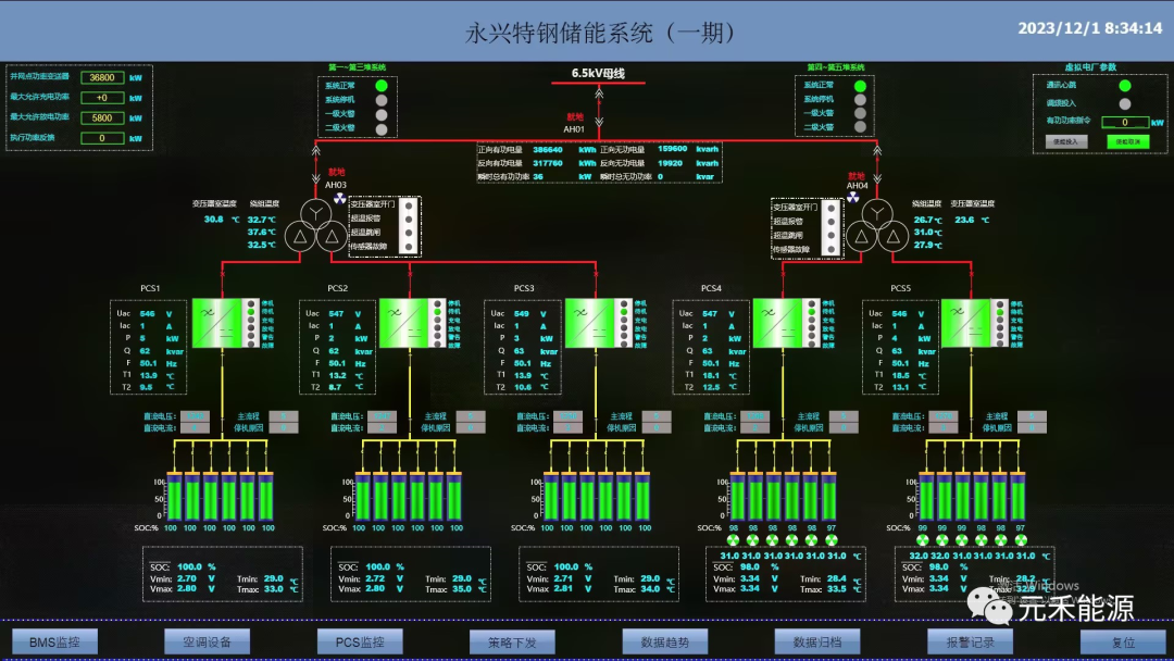 中國儲能網(wǎng)訊:2023年12月8日,由元禾能源與永興鋰電合作建設(shè)的永興特鋼工商業(yè)混合儲能項目一期在湖州永興特鋼廠內(nèi)正式并網(wǎng)運行。該項目是混合儲能在工商業(yè)儲能項目的成功應(yīng)用,項目一期采用了元禾能源2MW/4MWh磷酸鐵鋰和永興鋰電的4MW/2MWh的鈦酸鋰電池。