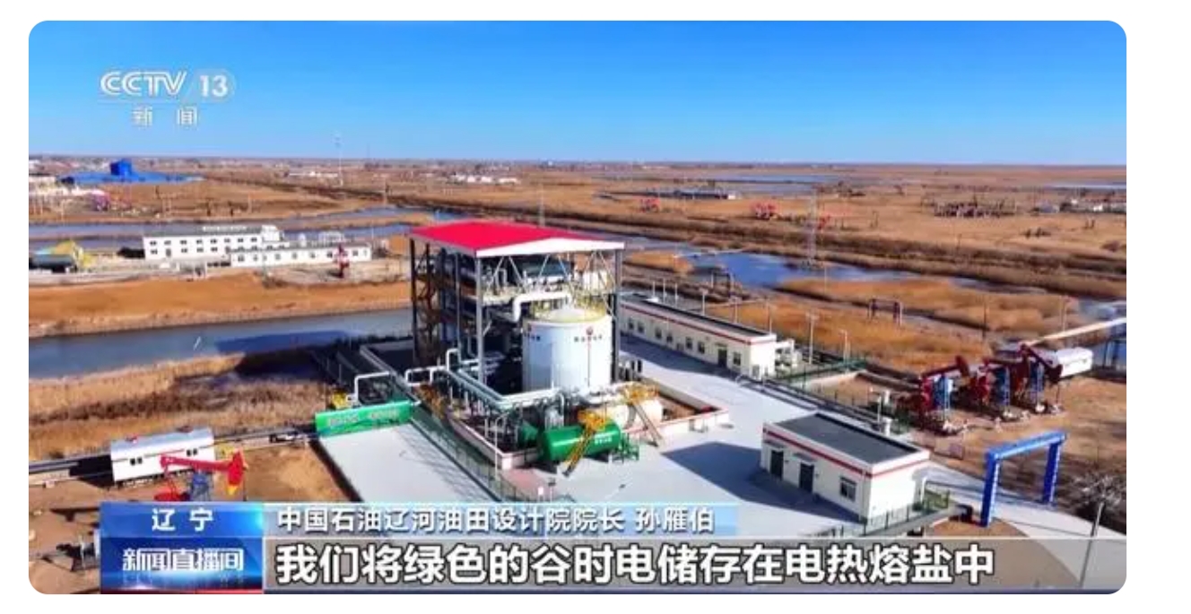 世界首座電熱熔鹽儲能注汽試驗站,近日在遼河油田竣工投產(chǎn)。該試驗站利用電網(wǎng)負(fù)荷低谷時的電加熱熔鹽,把電能轉(zhuǎn)化為熱能存儲在液態(tài)熔鹽內(nèi),再通過高溫熔鹽與水連續(xù)換熱產(chǎn)生蒸汽,為周邊的稠油熱采井提供蒸汽。該站儲能規(guī)模為15兆瓦,每年可生產(chǎn)蒸汽4.8萬噸,替代天然氣313萬立方米,減排二氧化碳6768噸。