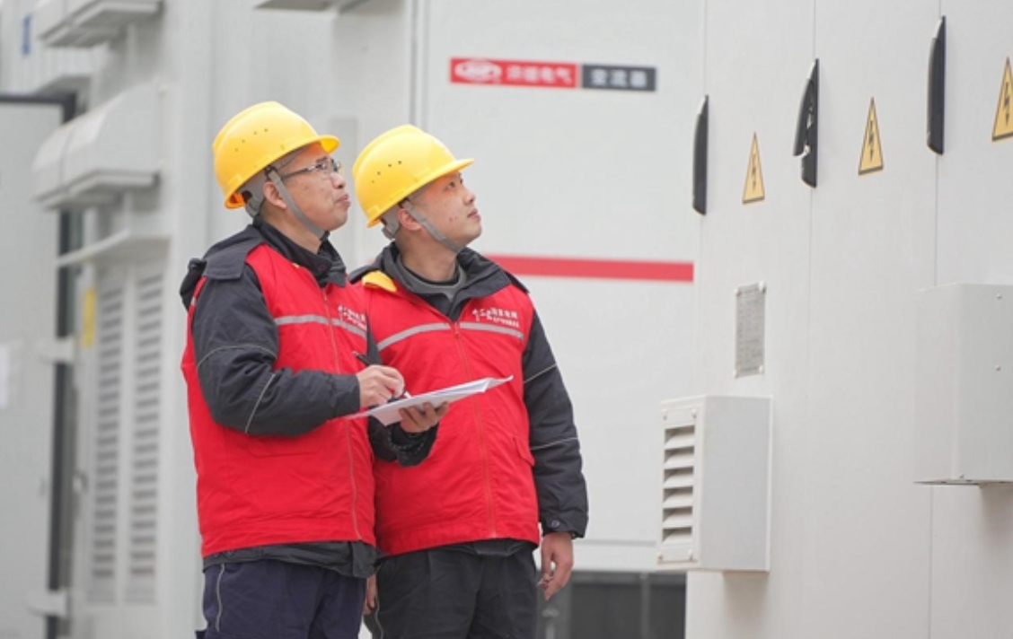 12月26日,國網(wǎng)重慶市電力公司員工正在巡檢南川大燕儲能電池倉。(通訊員 吳莉 攝)