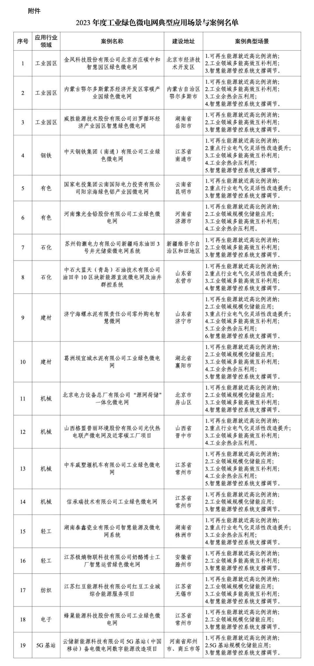 附件:2023年度工業(yè)綠色微電網(wǎng)典型應用場景與案例名單