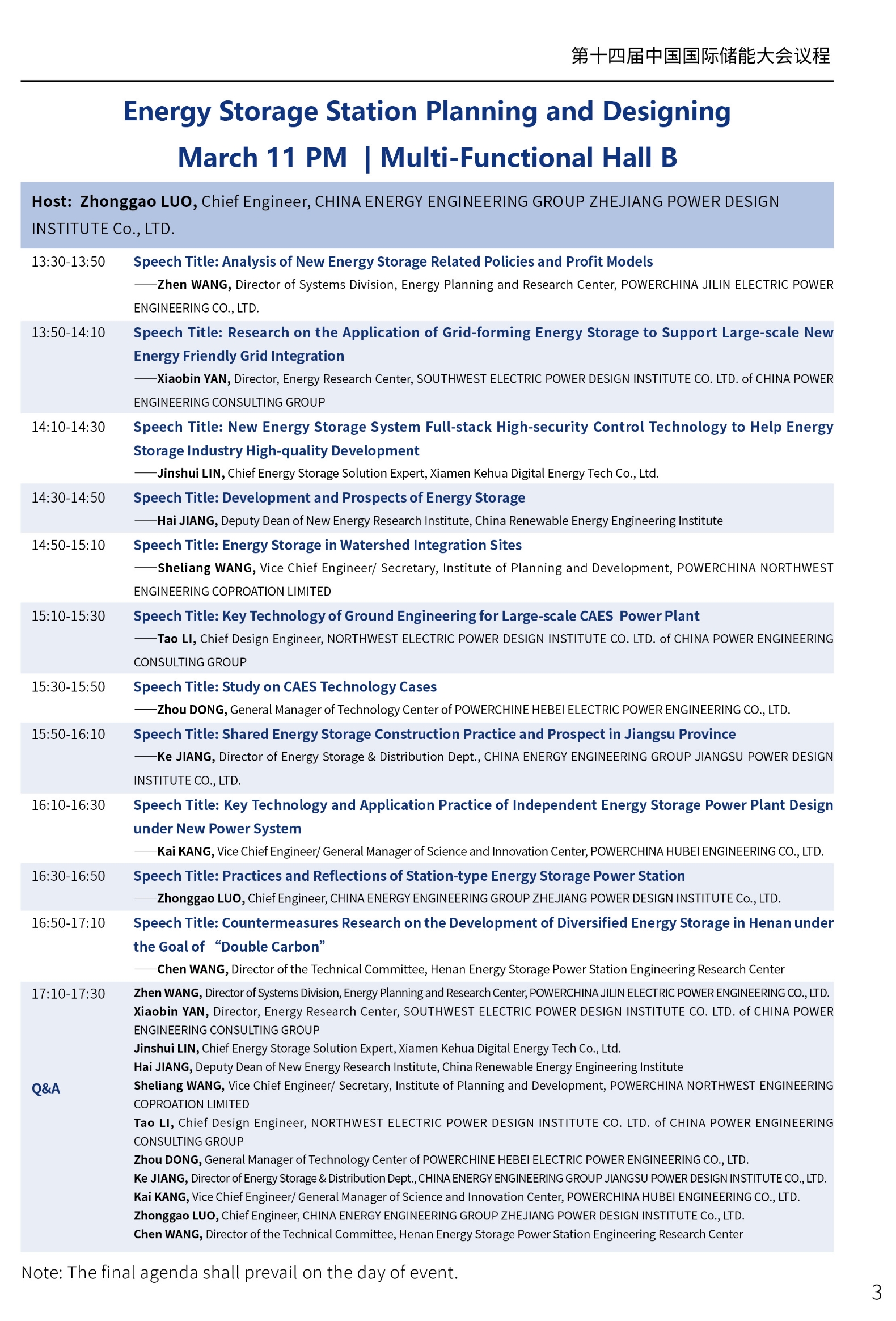 第十四屆中國(guó)國(guó)際儲(chǔ)能大會(huì)——儲(chǔ)能電站規(guī)劃與設(shè)計(jì)專場(chǎng)議程